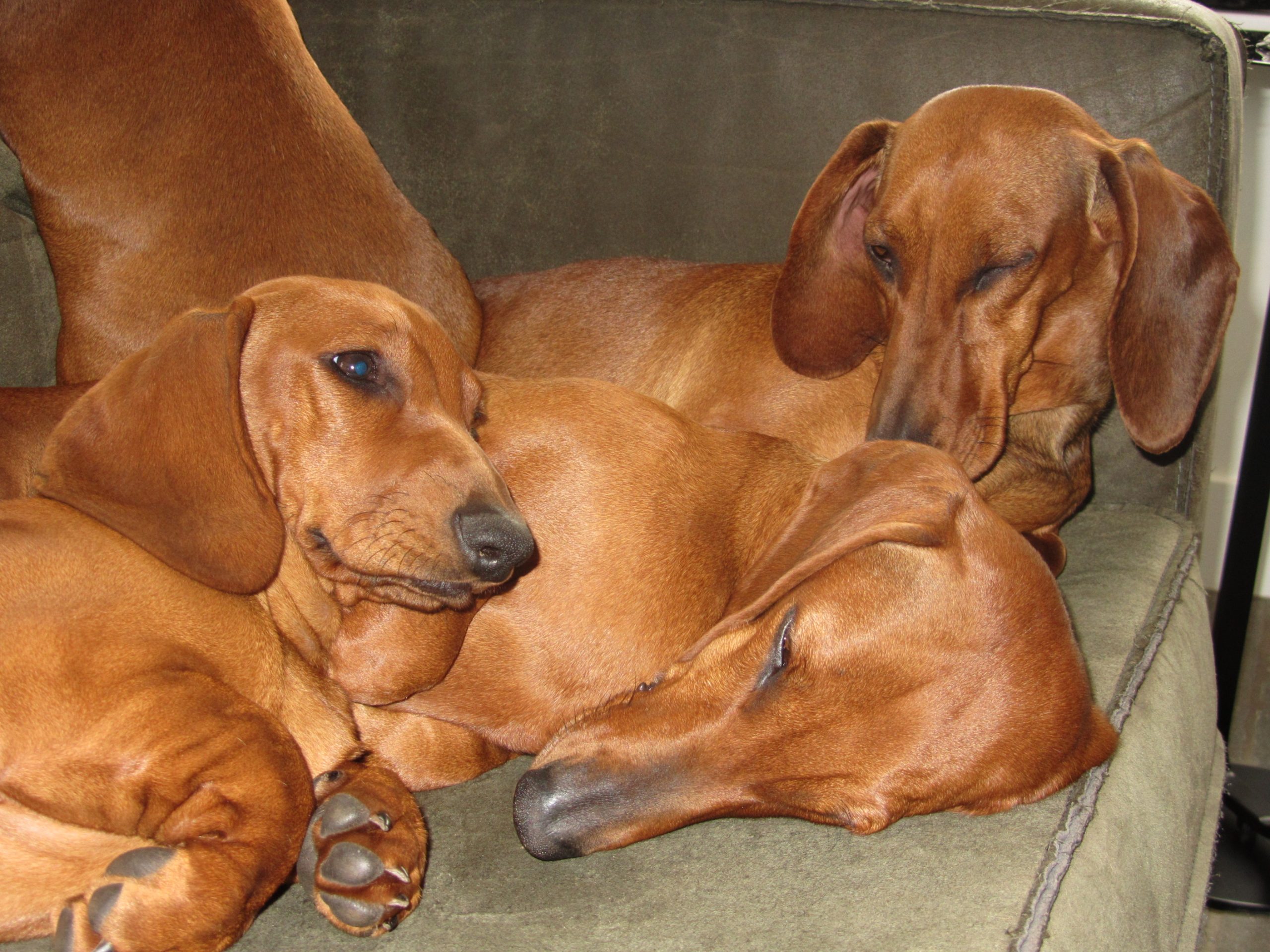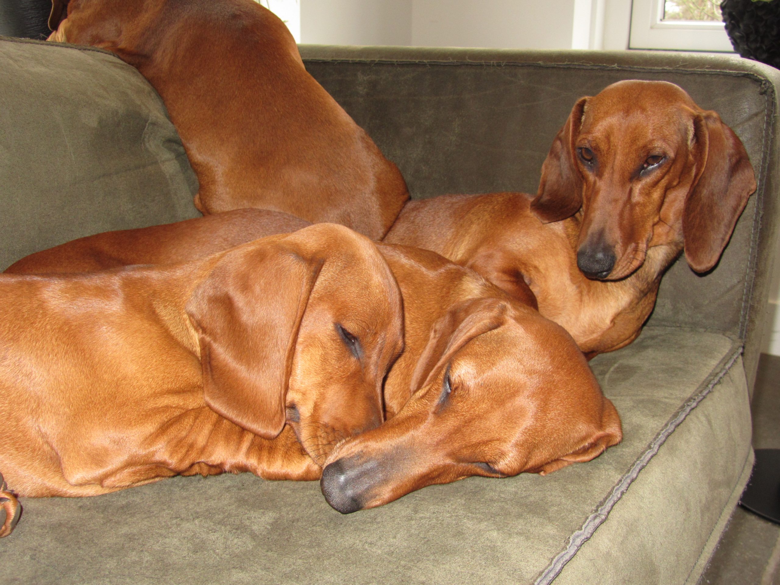 De Standaard Teckel is de grootste variëteit binnen de groep van de Dashonden. De Korthaar Standaard Teckel is slim, vrolijk, eigenzinnig en alert. Tevens zijn ze moedig, zelfstandig en echte doorzetters. Teckels blaffen over het algemeen snel, omdat dit in de jacht ook van ze verwacht wordt. Echter de Standaard Teckel is het minst luidruchtig en een goede socialisatie en consequente opvoeding zorgen voor een stabiele hond. De teckels die wij momenteel hebben zijn in de kleur Rood. Afhankelijk van de gebruikte reu kunnen er wel andere kleuren pups komen, zoals Black and tan of met een patroon Gestroomd of Getijgerd (Merle).Wij fokken volgens de richtlijnen van de Nederlandse Teckel Club (NTC) en zijn NTC fokker. Dit houdt onder andere in dat we de benodigde gezondheidsonderzoeken uitvoeren (ECVO) en ze naar een hondenshow gaan. Voor de volledige eisen kunt u de website van de NTC raadplegen.