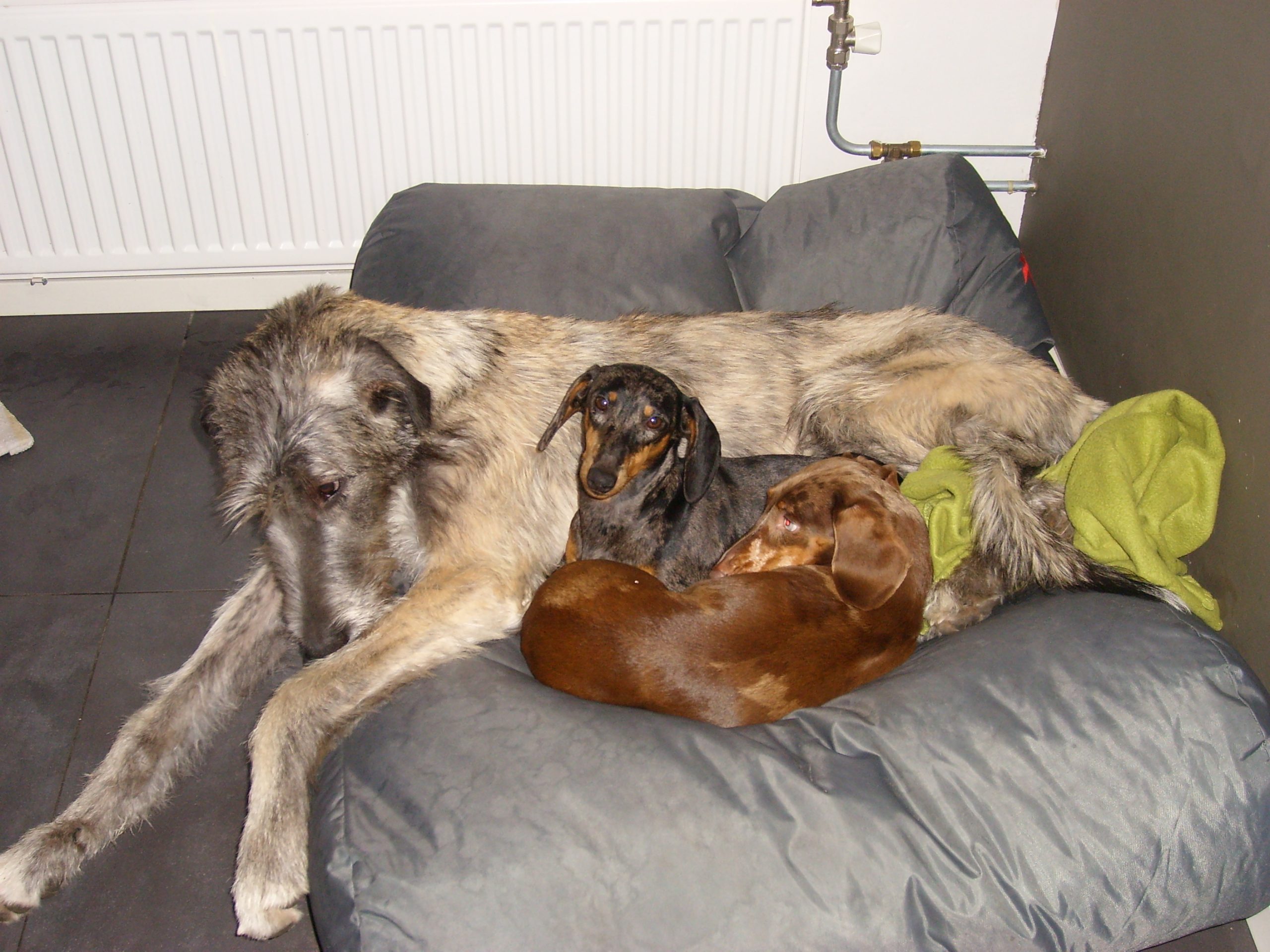 We verhuisden naar het buitengebied van Putten waar ruimte kwam voor meer honden en kwamen Standaard Korthaar Teckel getijgerd, Kaatje en Ierse Wolfshond Noa. Met Kaatje hebben we onze twee eerste nesten gefokt en hieruit is Guusje gebleven. Guusje was een goede speurder en via haar zijn we gestart met het zweetwerk. De bovenstaande honden zijn inmiddels overleden.