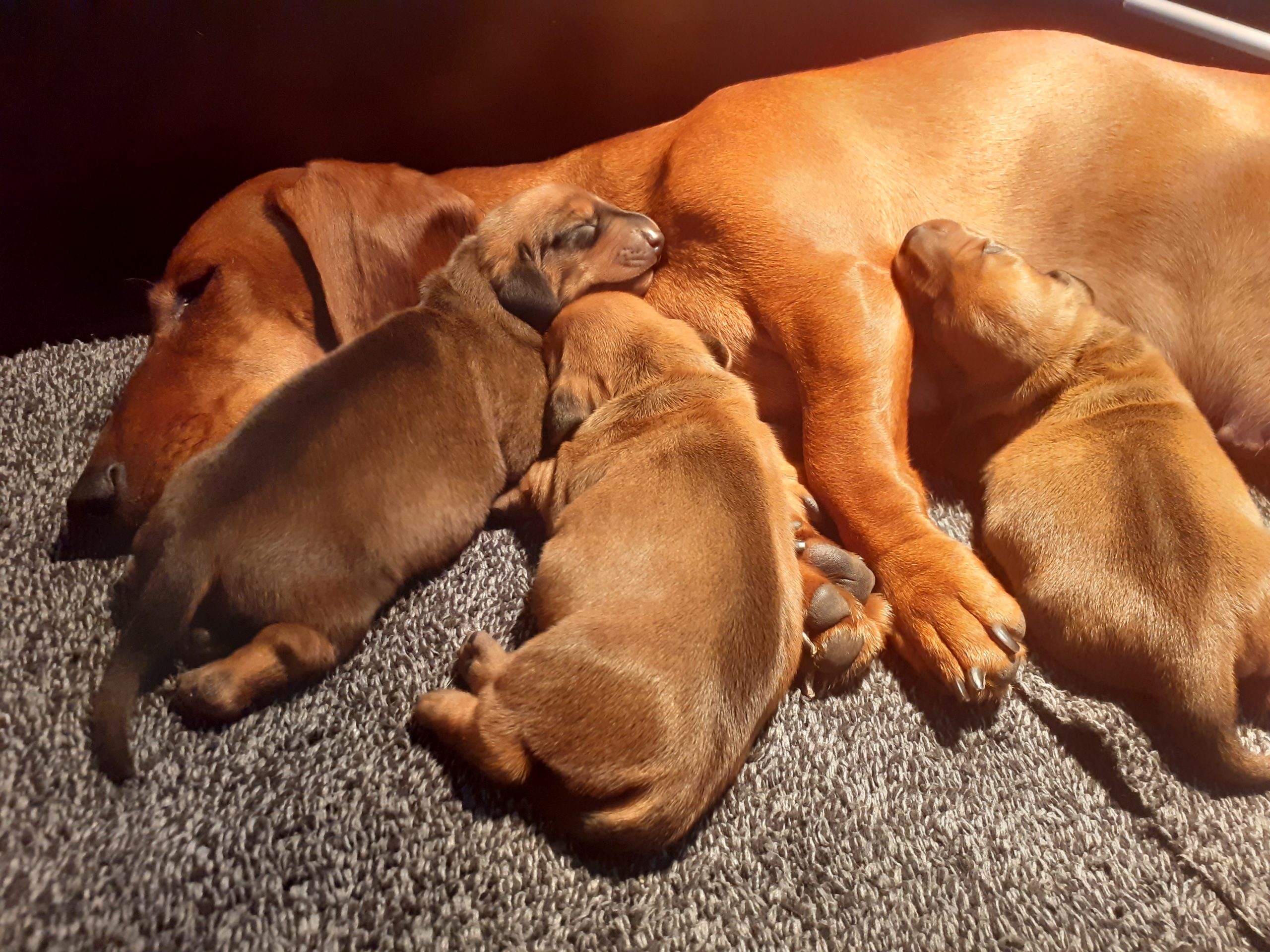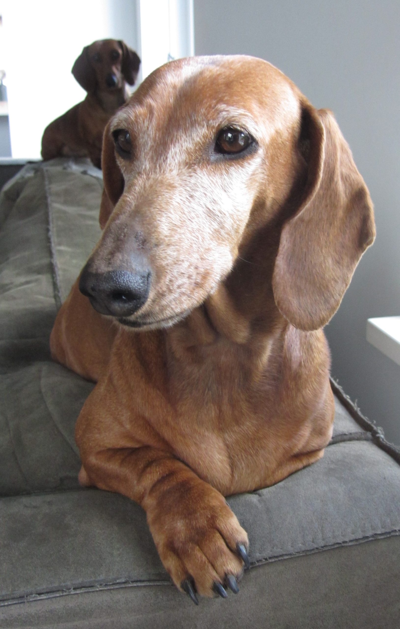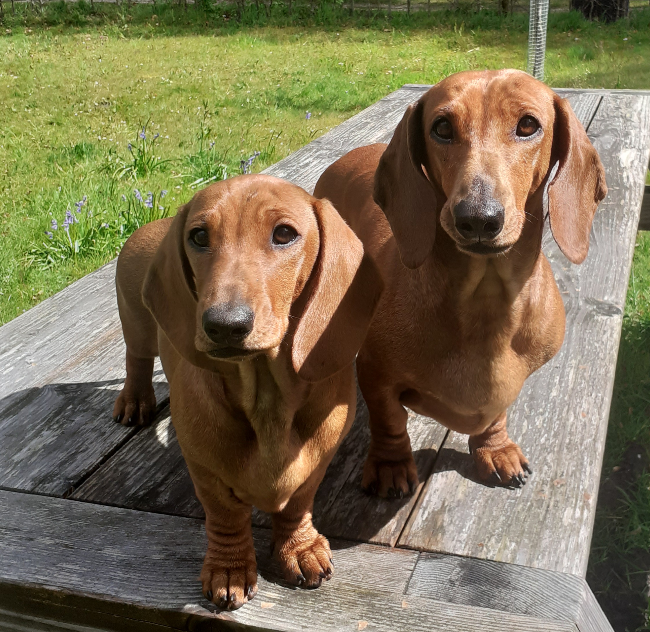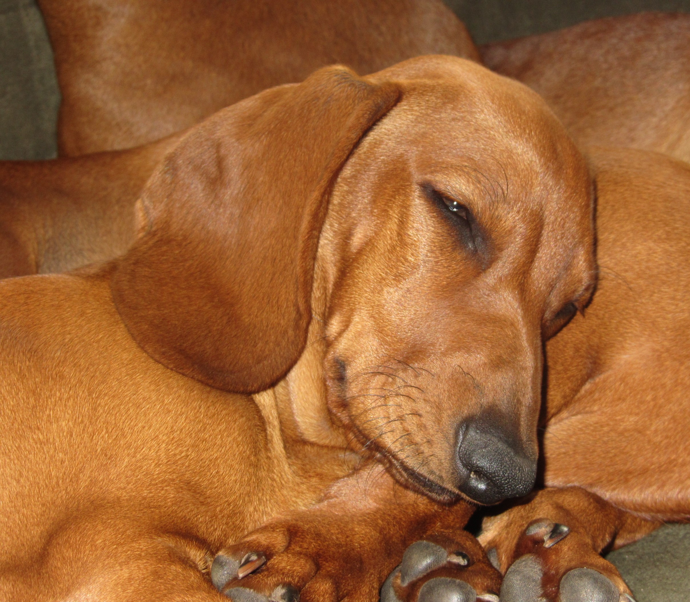 Twirre is een zelfstandige teckel. In huis is ze rustig en ligt het liefst op schoot of op de bank zodat ze wel alles kan overzien. Buiten heeft ze de pas er aardig in. Ze heeft duidelijk voorkeur voor bepaalde personen, degene die ze niet interessant vindt laat ze aan haar voorbij gaan. Twirre heeft 2 nesten gehad. Haar eerste nest was erg groot met 9 pups. Ze gaf ruim voldoende voeding dus heeft alle 9 pups zonder enige hulp groot gebracht. In het tweede nest zaten 6 pups. Van het laatste nest hebben we Fien gehouden. Twirre is inmiddels gesteriliseerd.